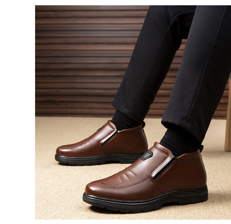 Nowość [38-48] Nowe zimowe, męskie, ciepłe, pluszowe, skórzane buty, antypoślizgowa, miękka podeszwa